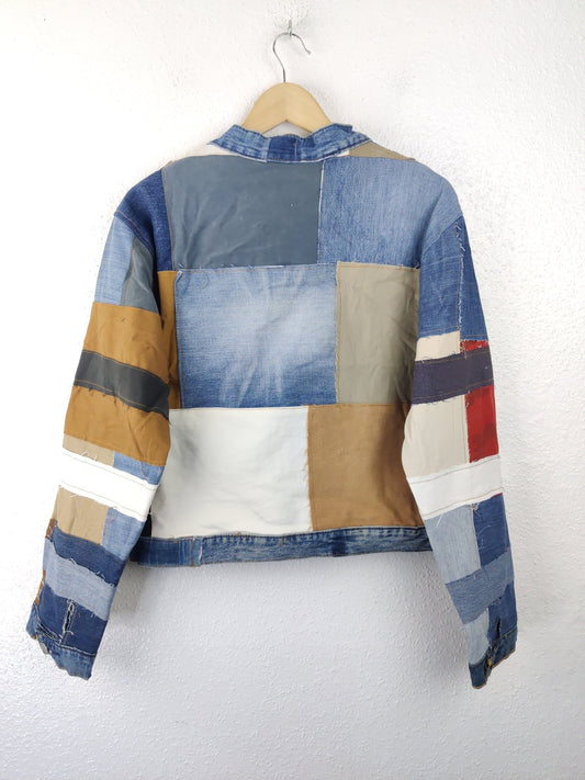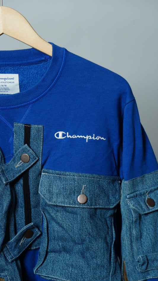 Upcycled Reworked Champion Blue Denim Cargo Pocket Vest Sweatshirt Size M