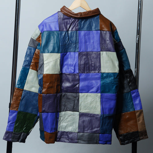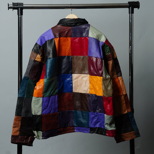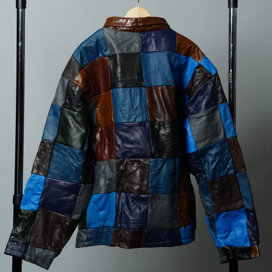 Leather Multicolor Patchwork Jacket Size XL