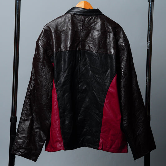 Upcycled Black & Red Leather Colorblock Jacket Size XL