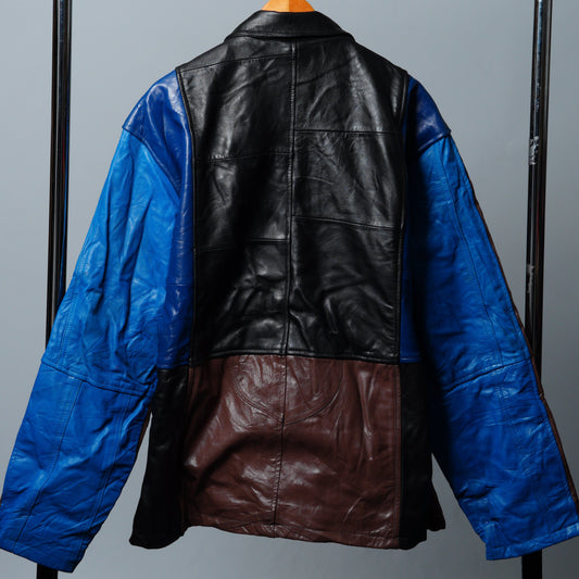 Upcycled Blue, Brown, & Black Leather Colorblock Jacket Size XL