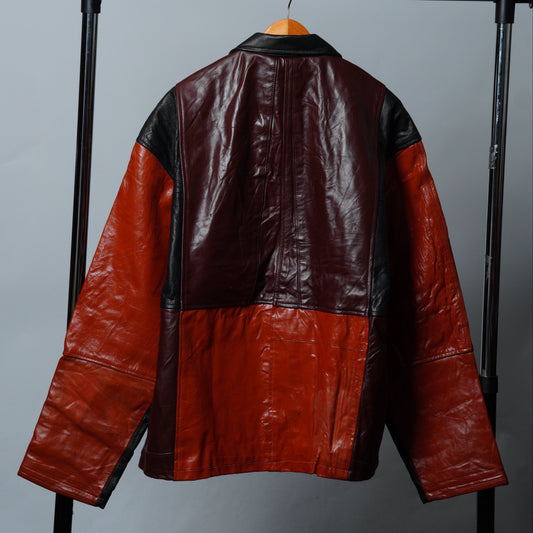 Upcycled Leather Colorblock Jacket Size XL
