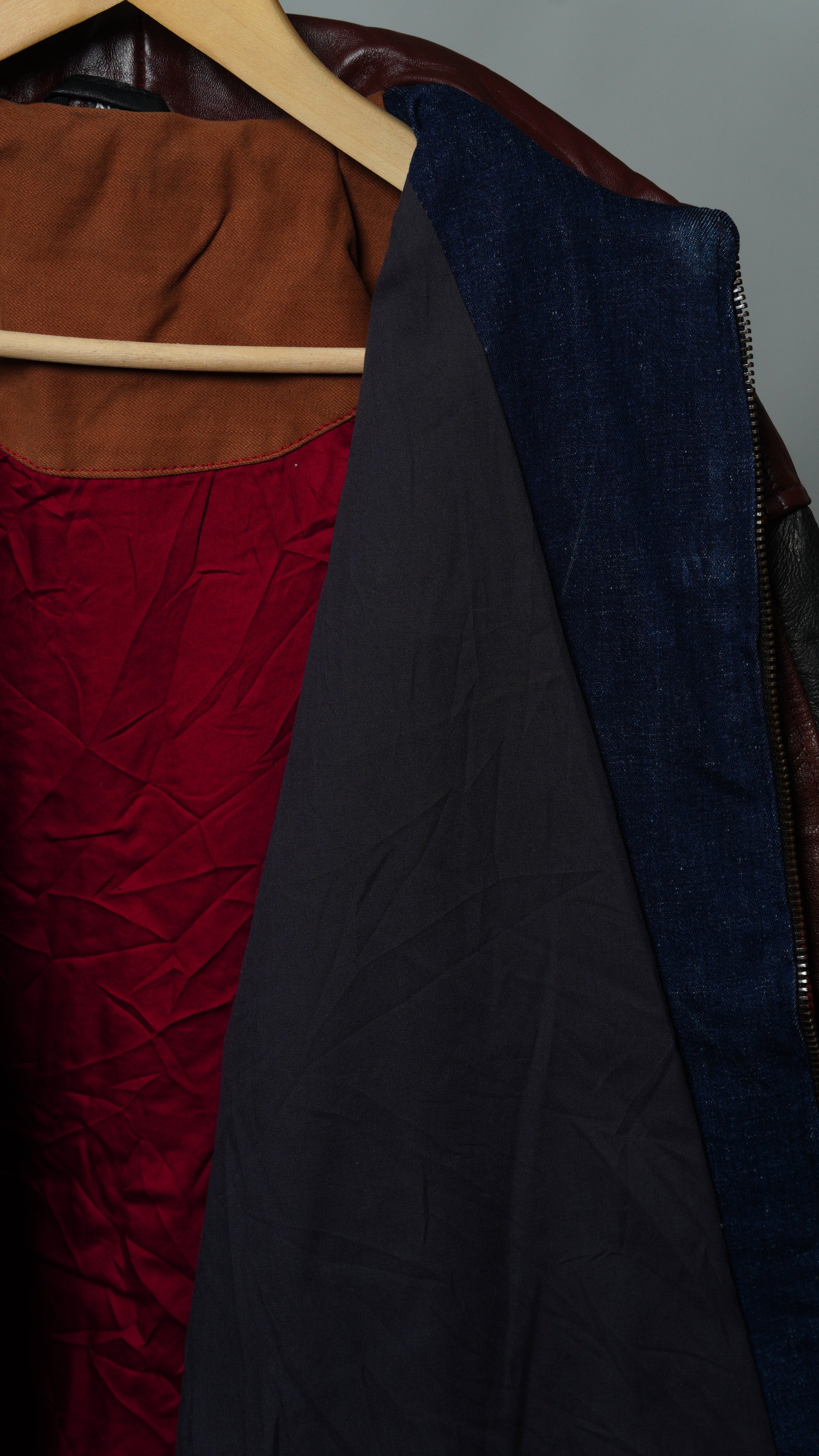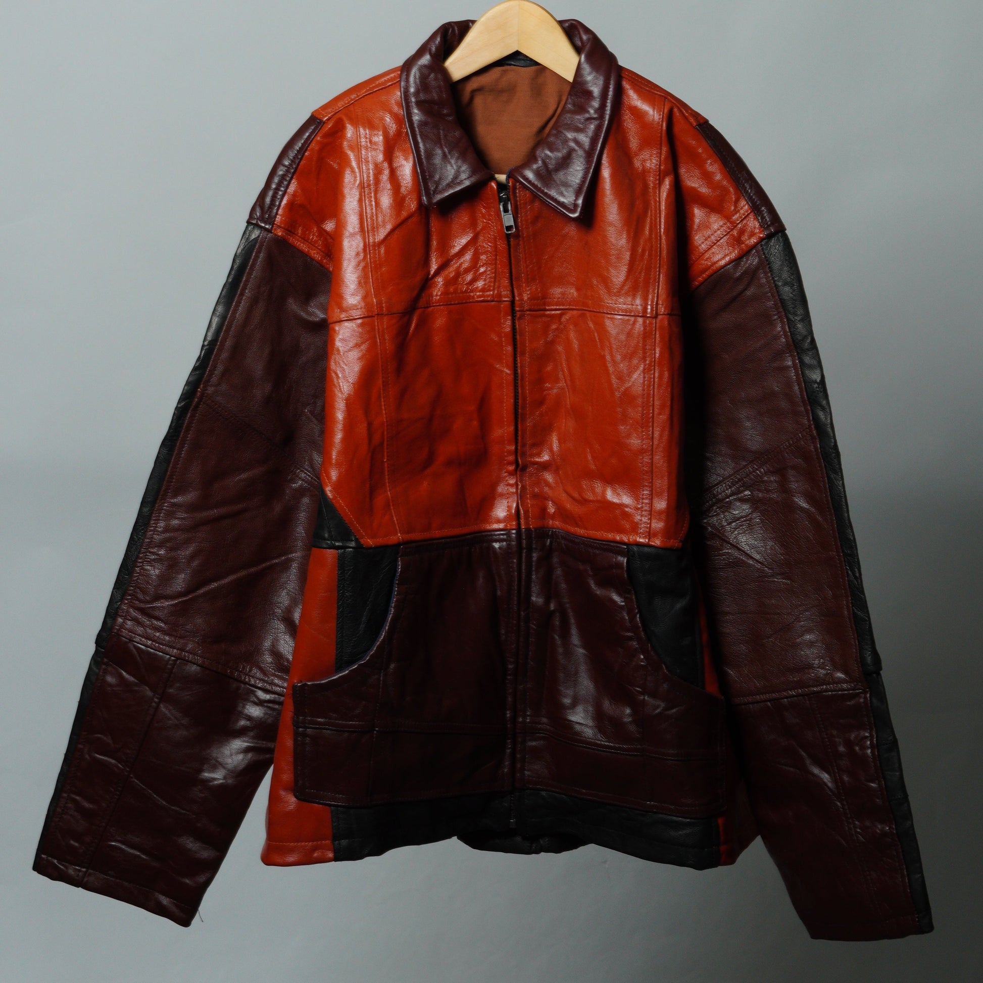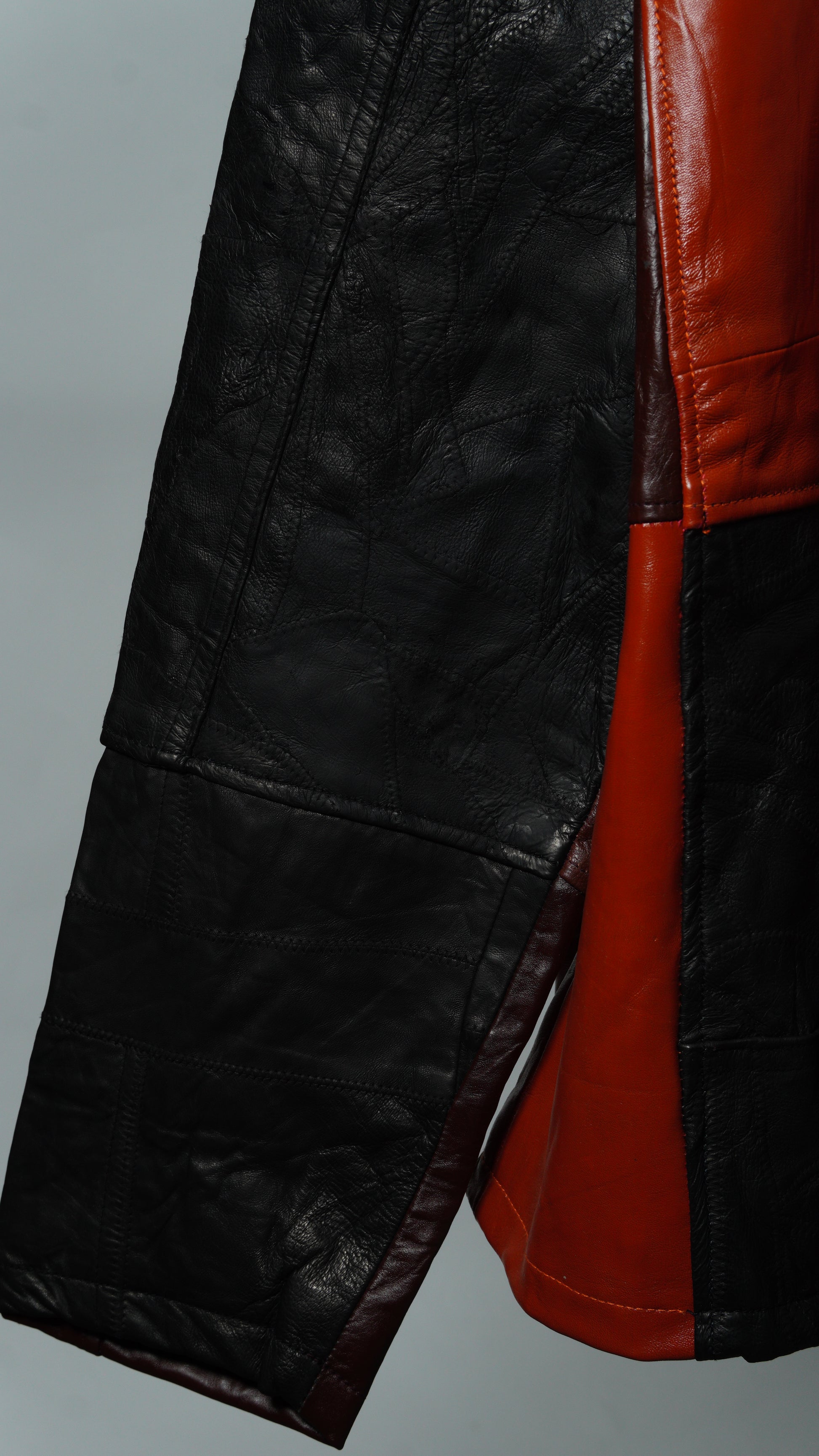 Upcycled Black & Red Leather Colorblock Jacket Size XL