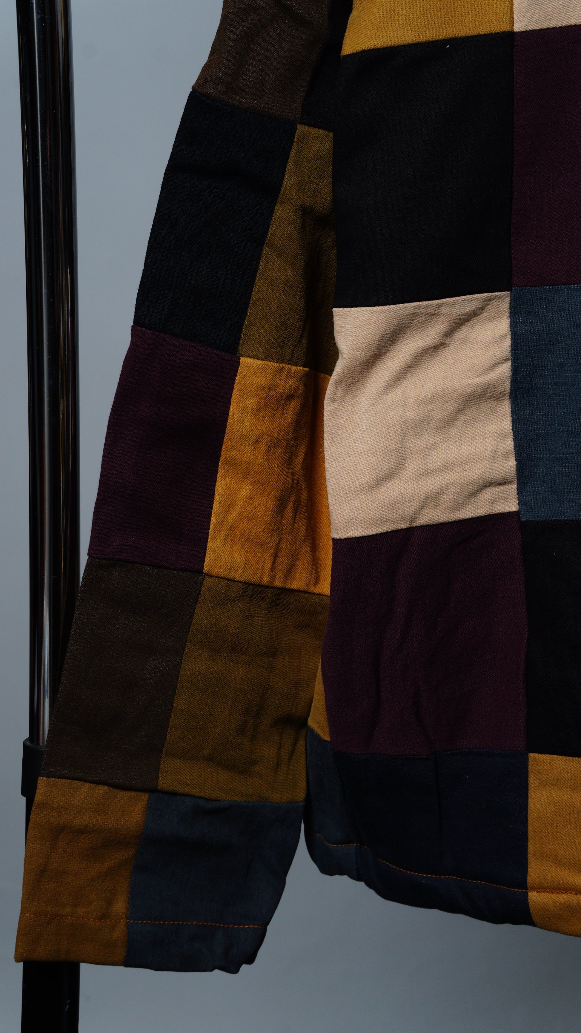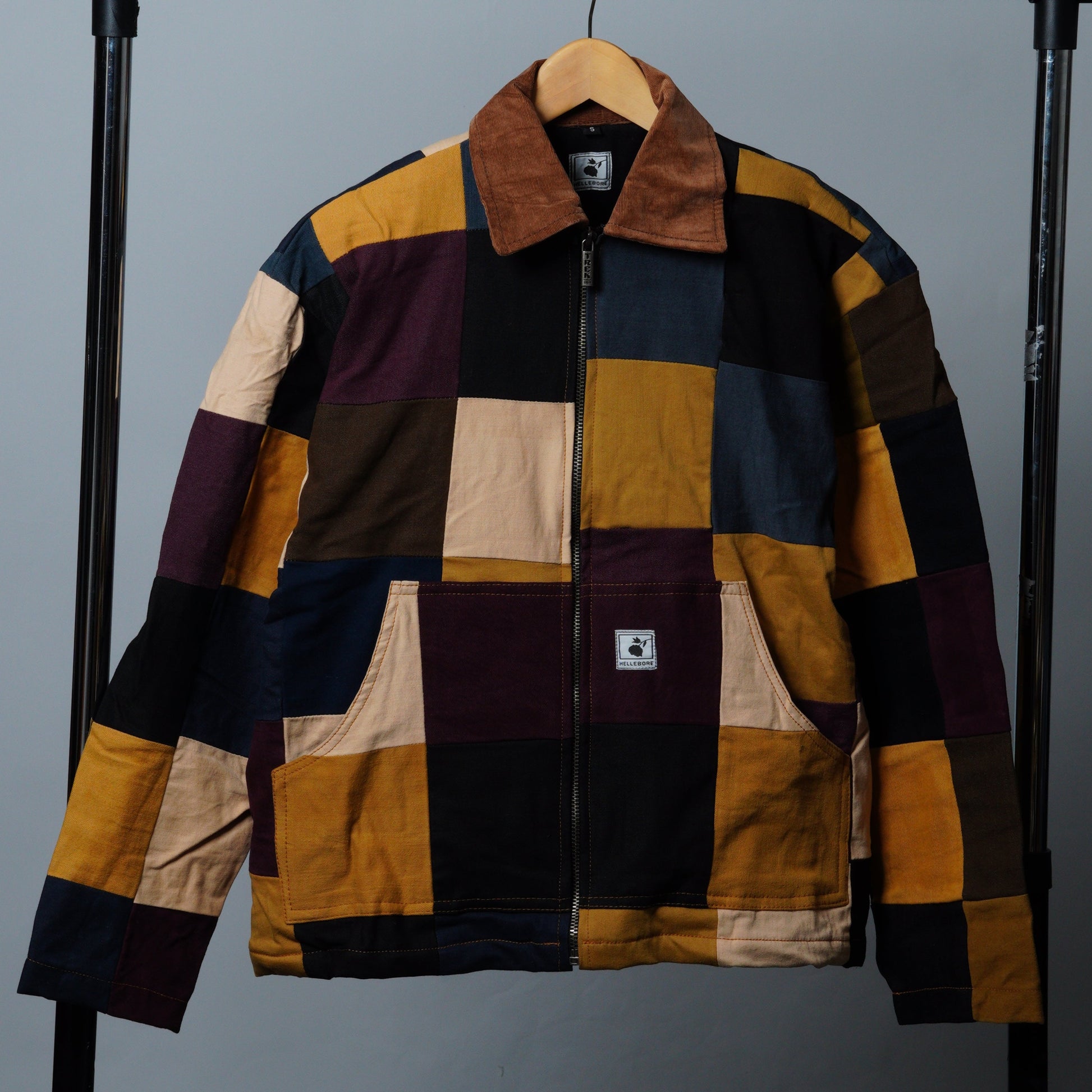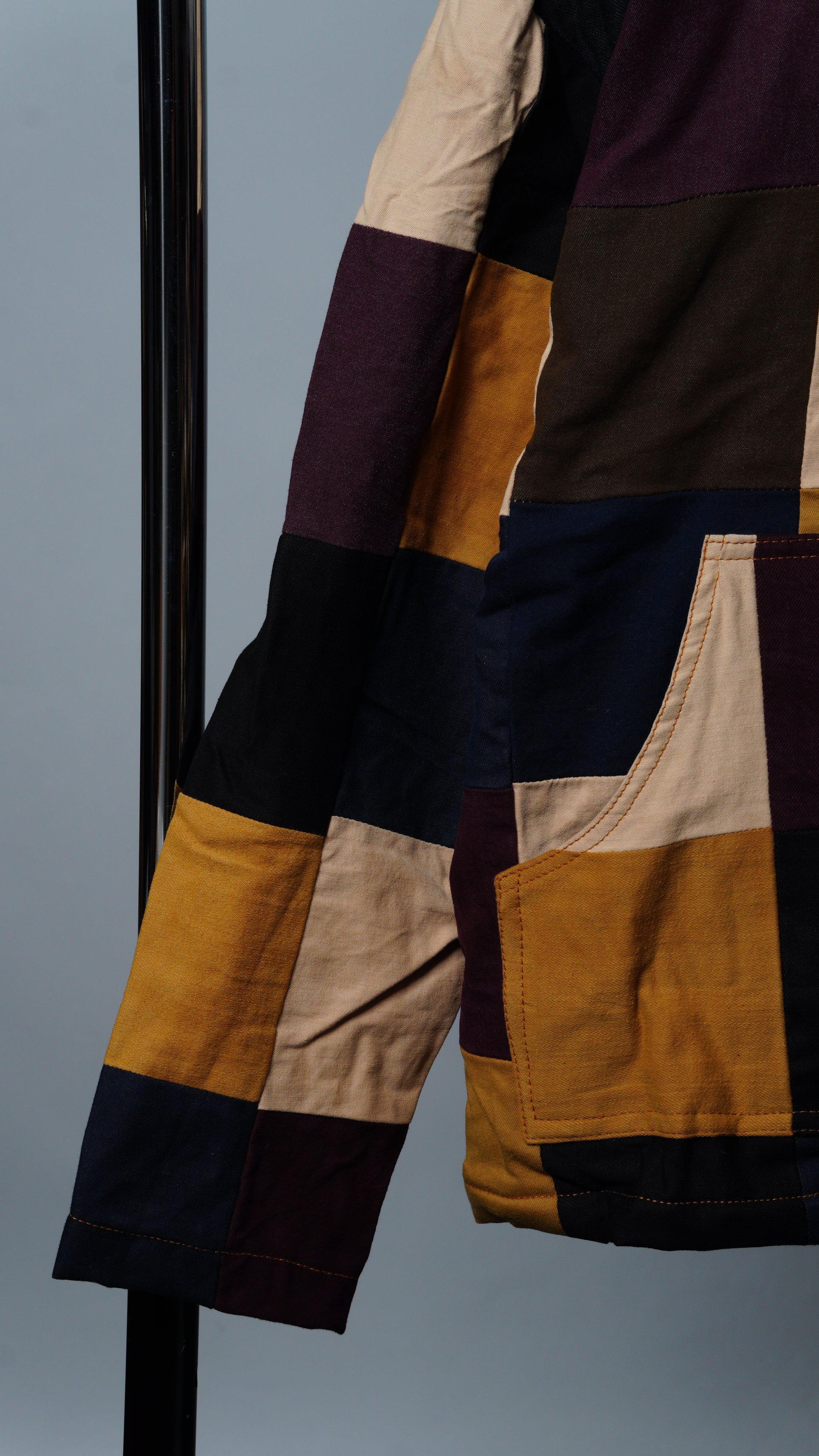 These jackets are made from soft work apparel scraps and preowned garments. Each jacket is unique with various color combinations and cloth linings. Linings and trims are taken from other second-hand materials and brands.