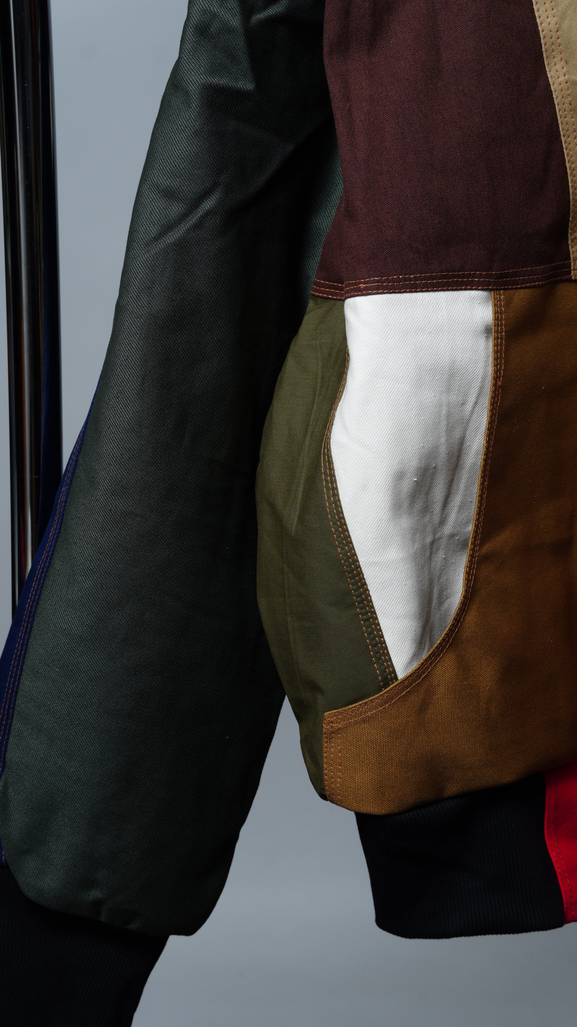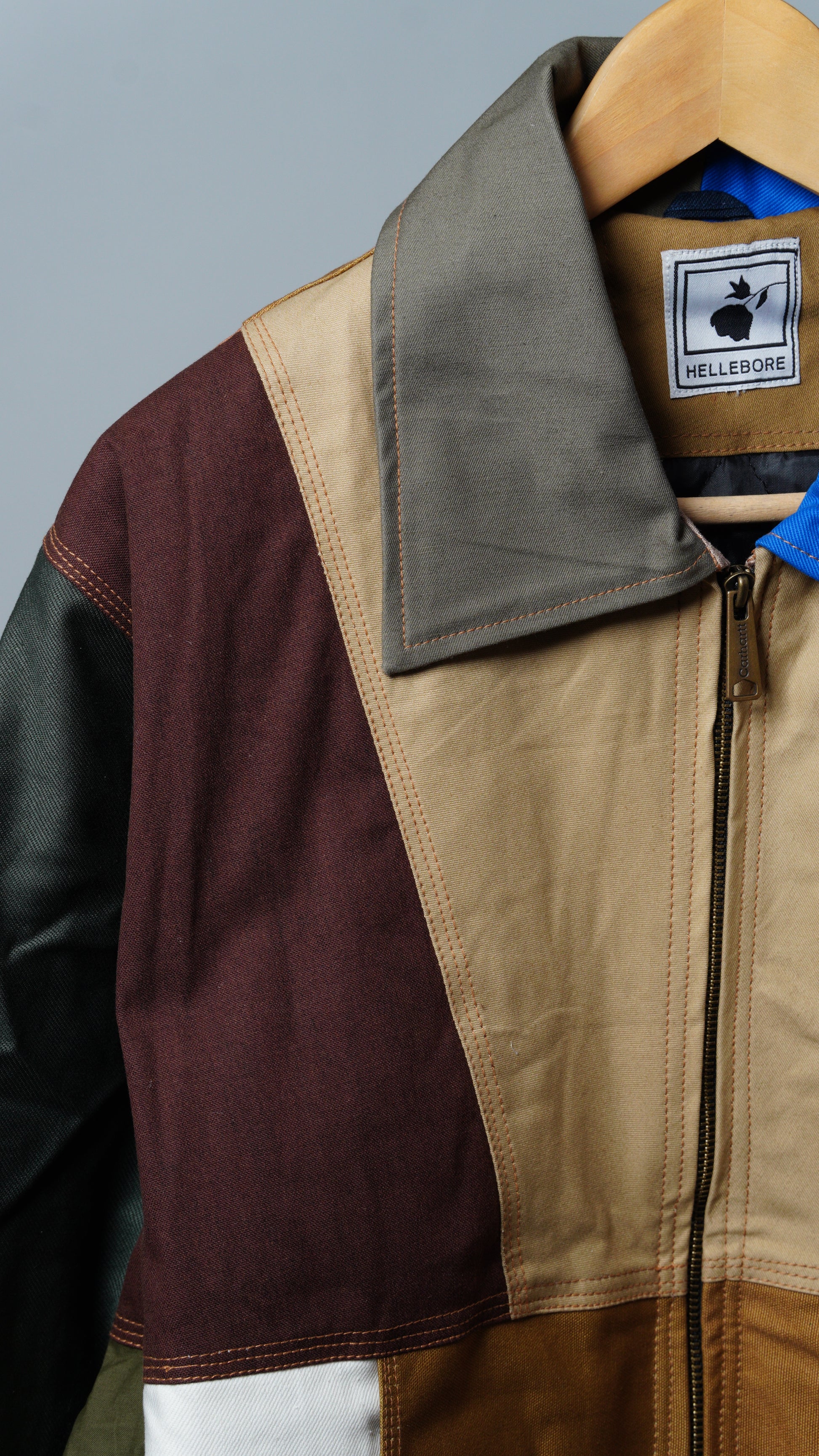These jackets are made from rag-house-sourced work apparel scraps, built with hardy cotton and a structured fit. Each jacket is unique with various color combinations and cloth linings.
