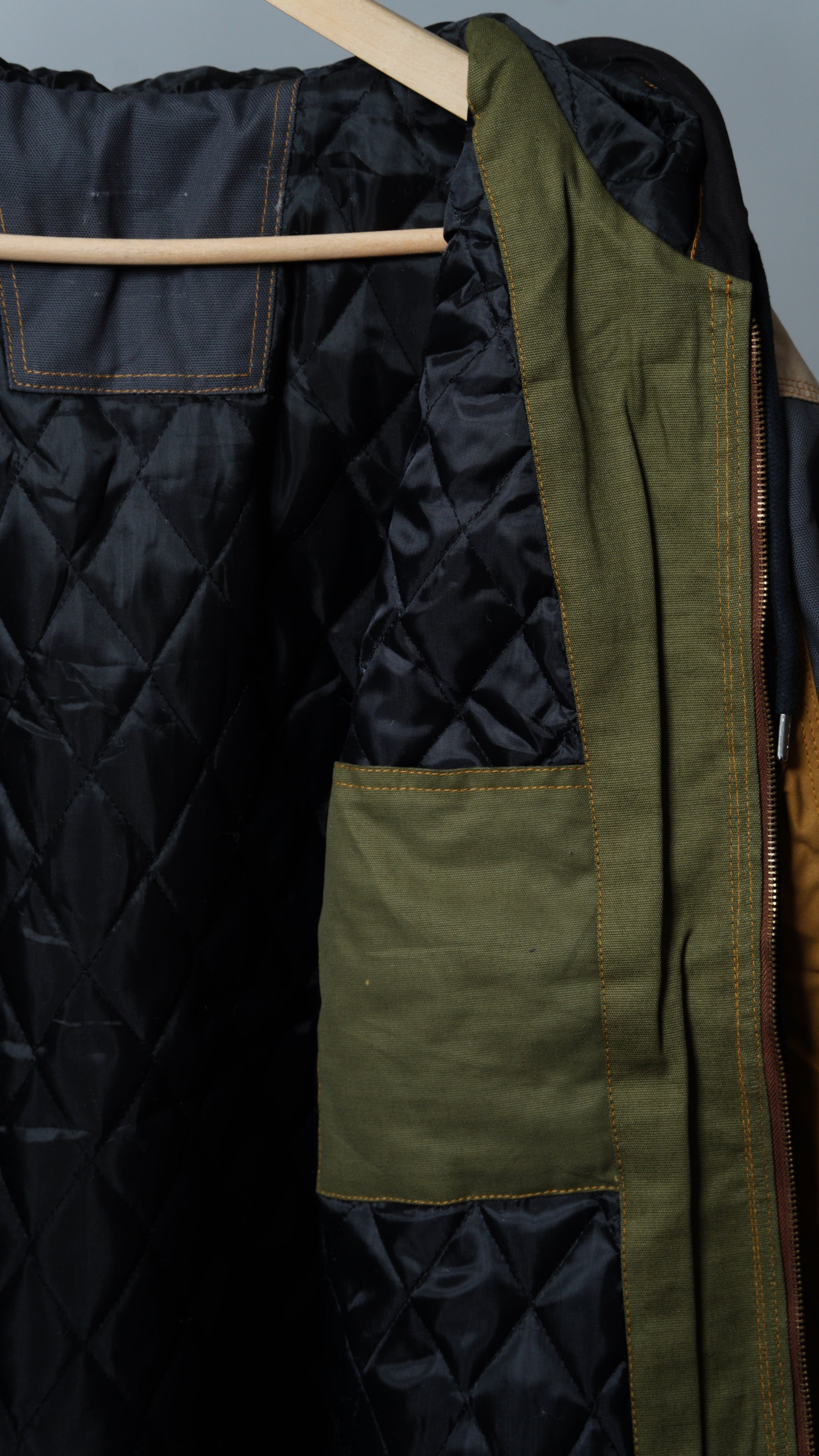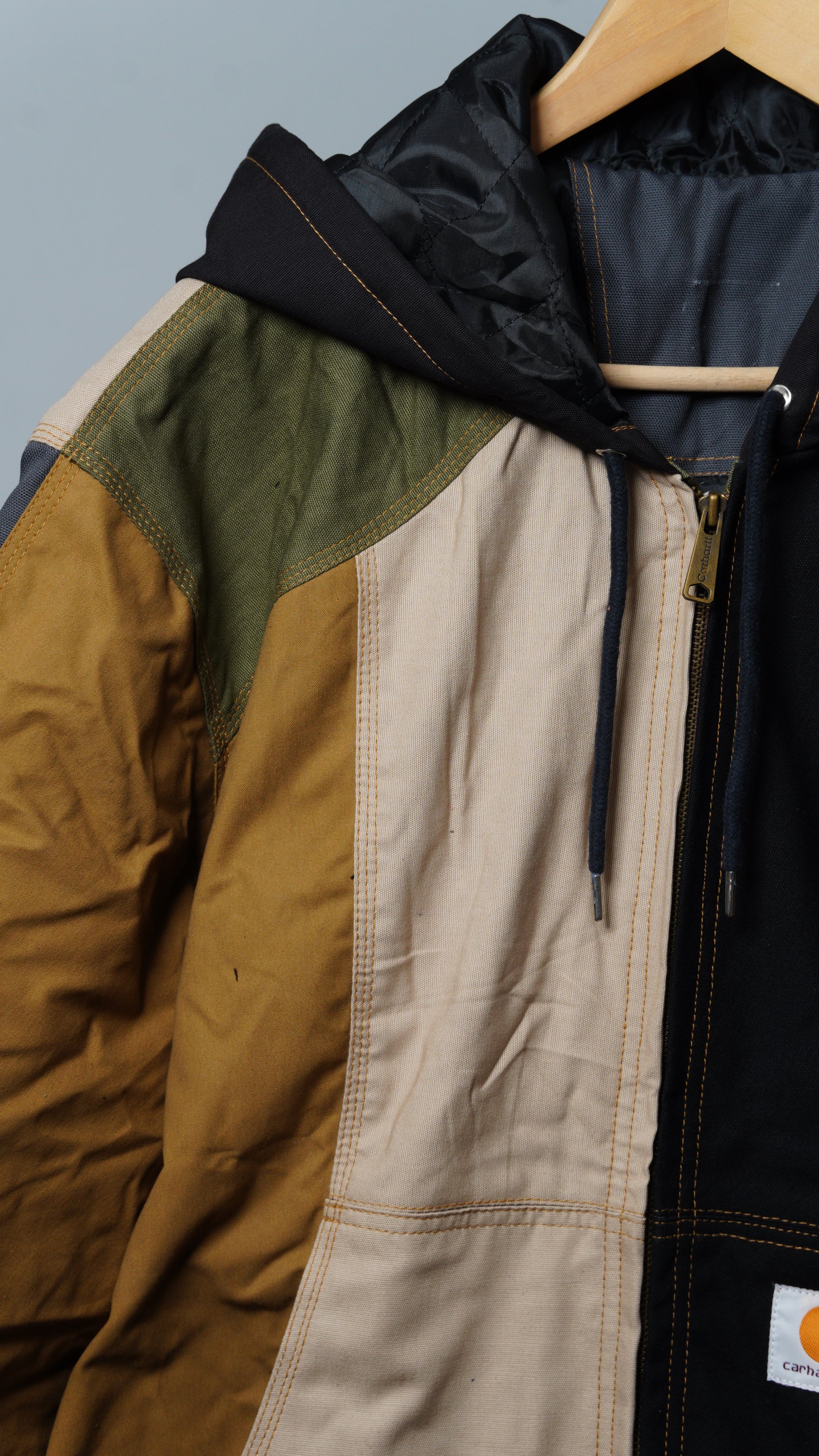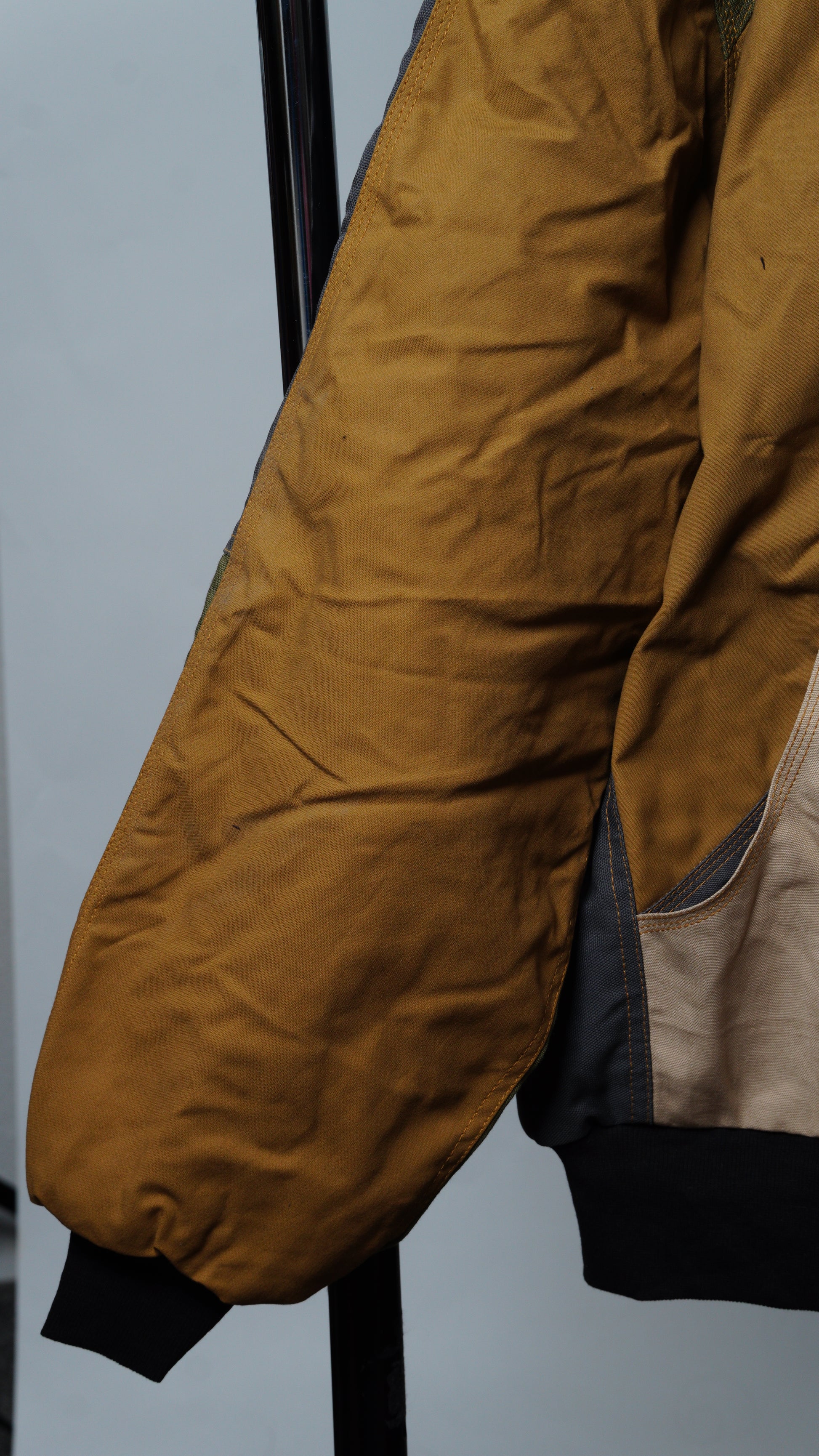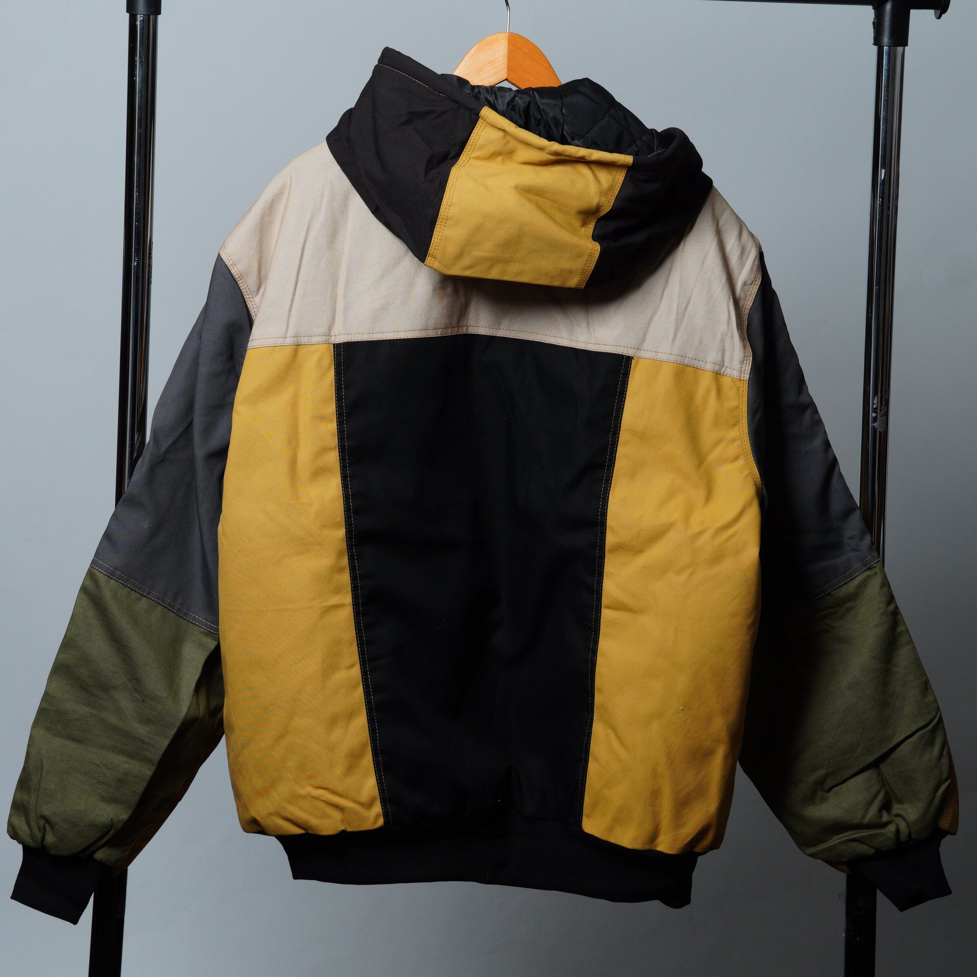 These jackets are made from rag-house-sourced work apparel scraps, built with hardy cotton and a structured fit. Each jacket is unique with various color combinations and cloth linings.