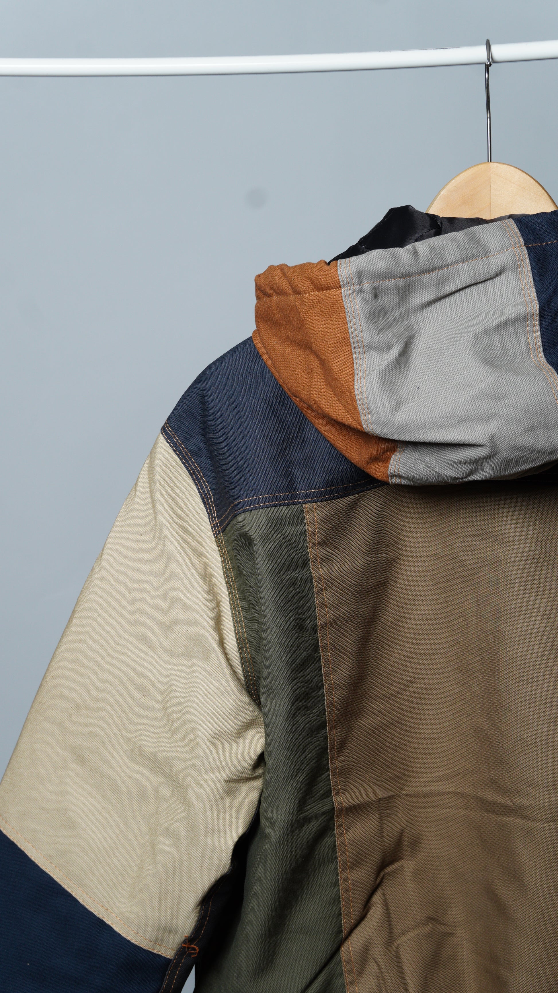 These jackets are made from rag-house-sourced work apparel scraps, built with hardy cotton and a structured fit. Each jacket is unique with various color combinations and cloth linings.