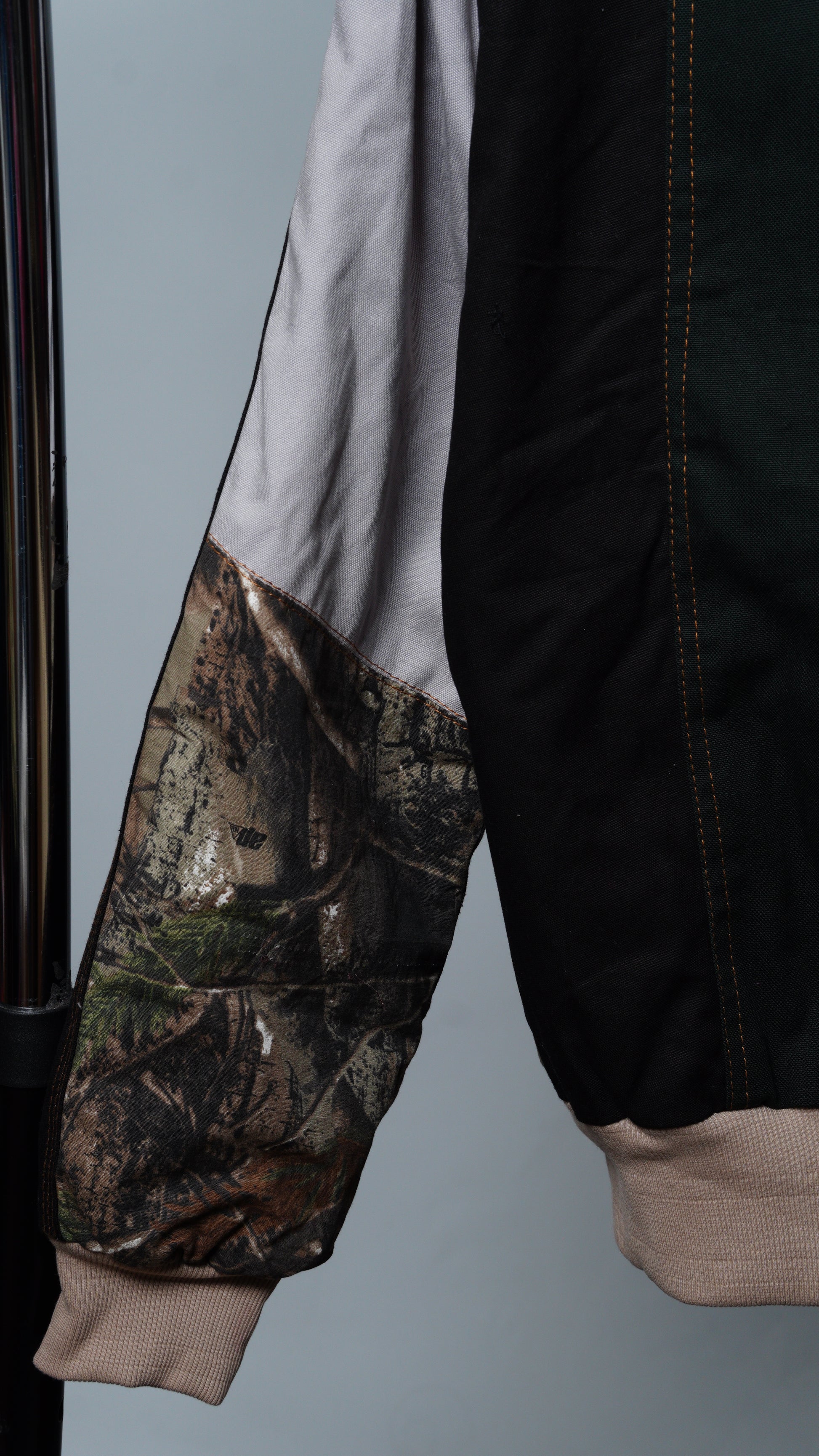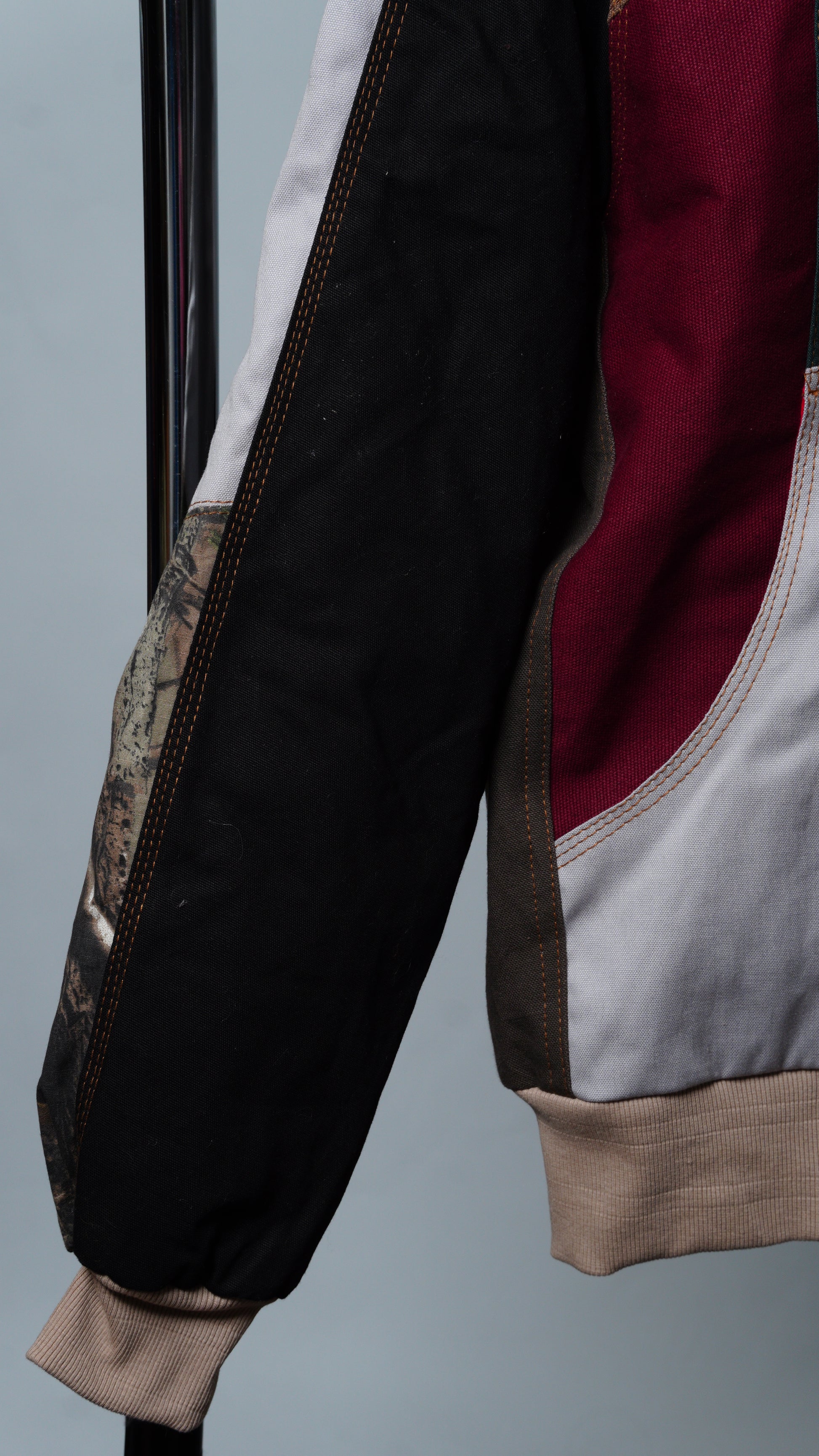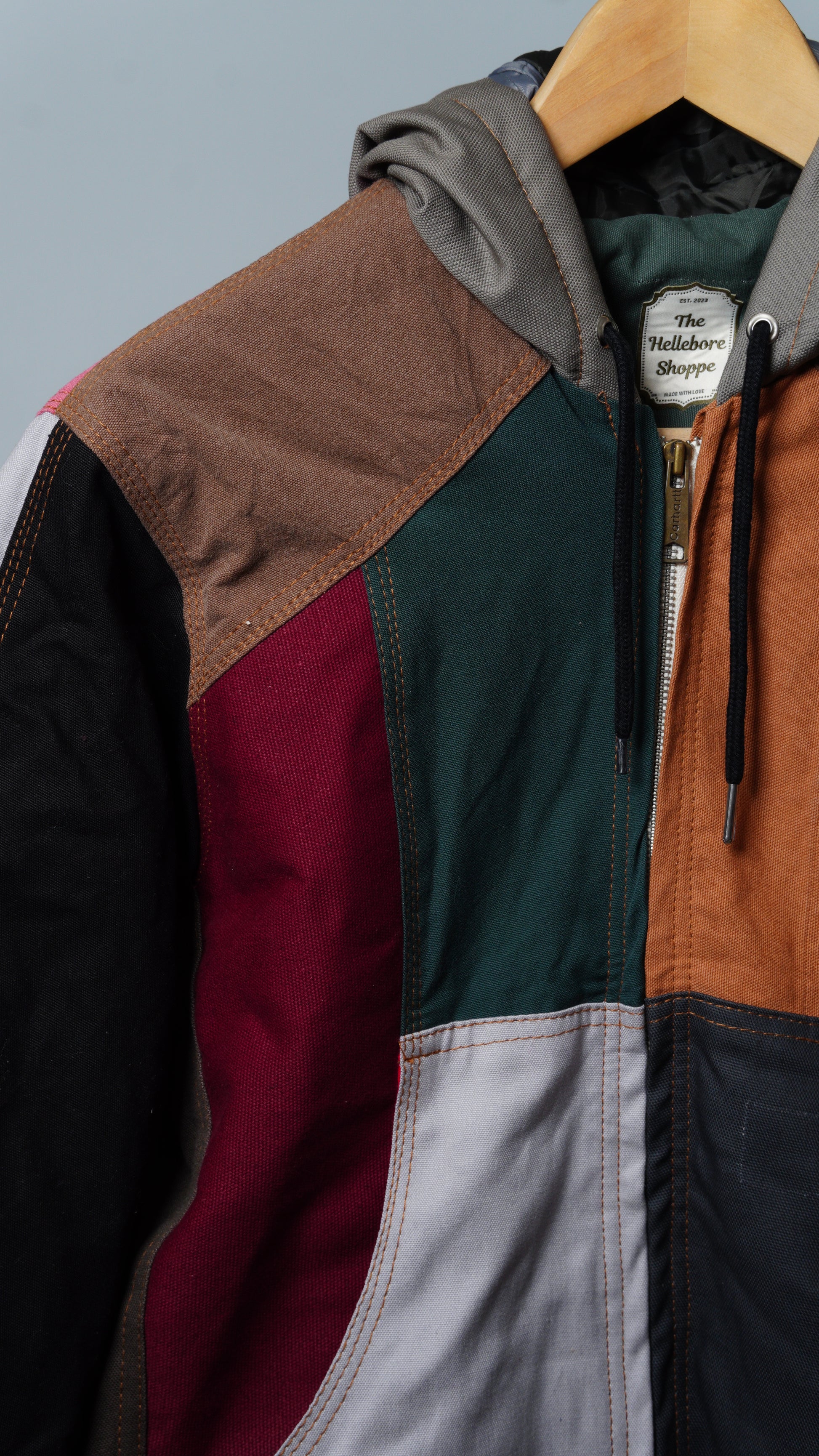 These jackets are made from rag-house-sourced work apparel scraps, built with hardy cotton and a structured fit. Each jacket is unique with various color combinations and cloth linings.
