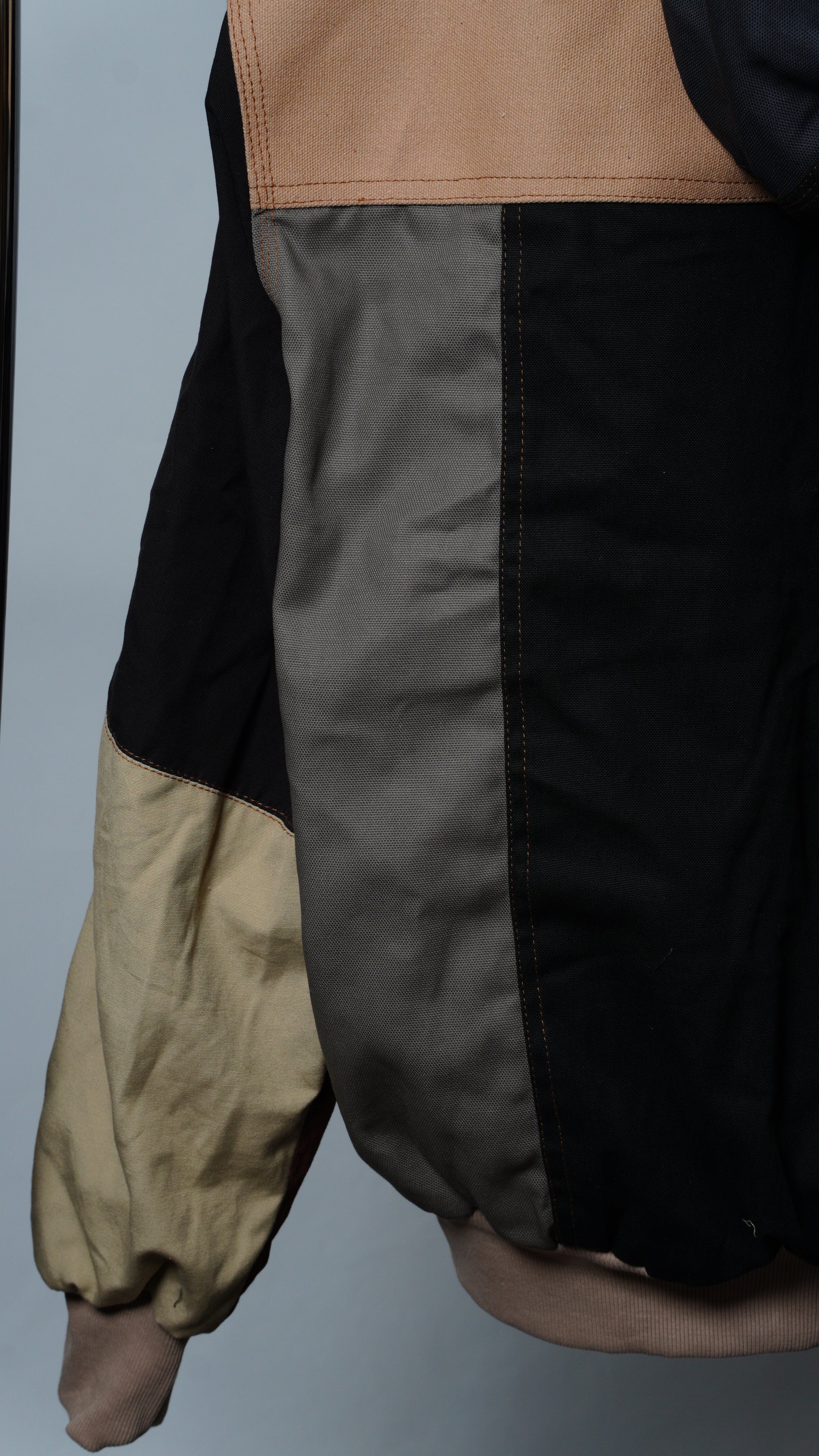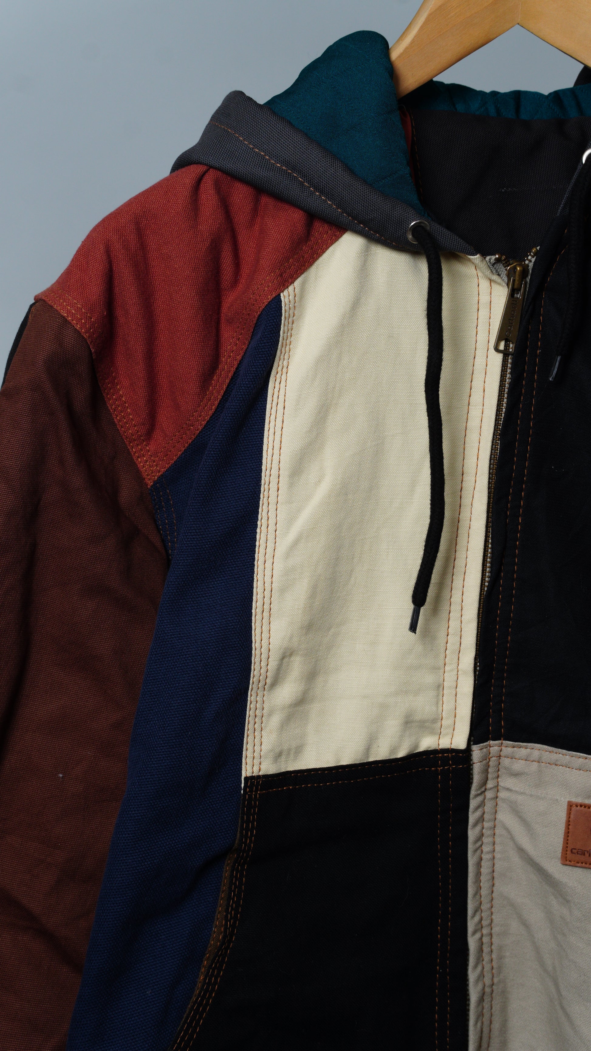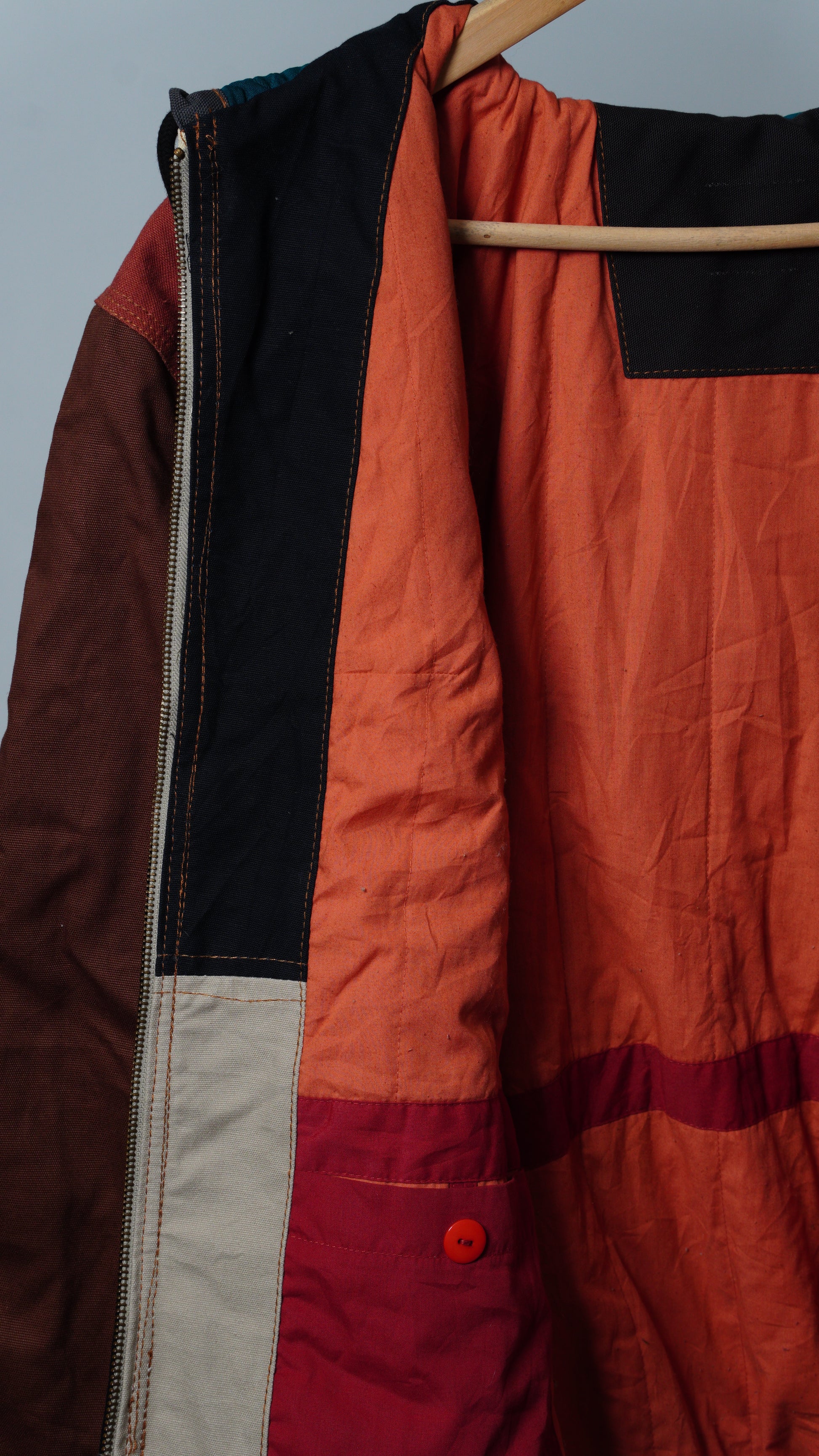 These jackets are made from rag-house-sourced work apparel scraps, built with hardy cotton and a structured fit. Each jacket is unique with various color combinations and cloth linings.