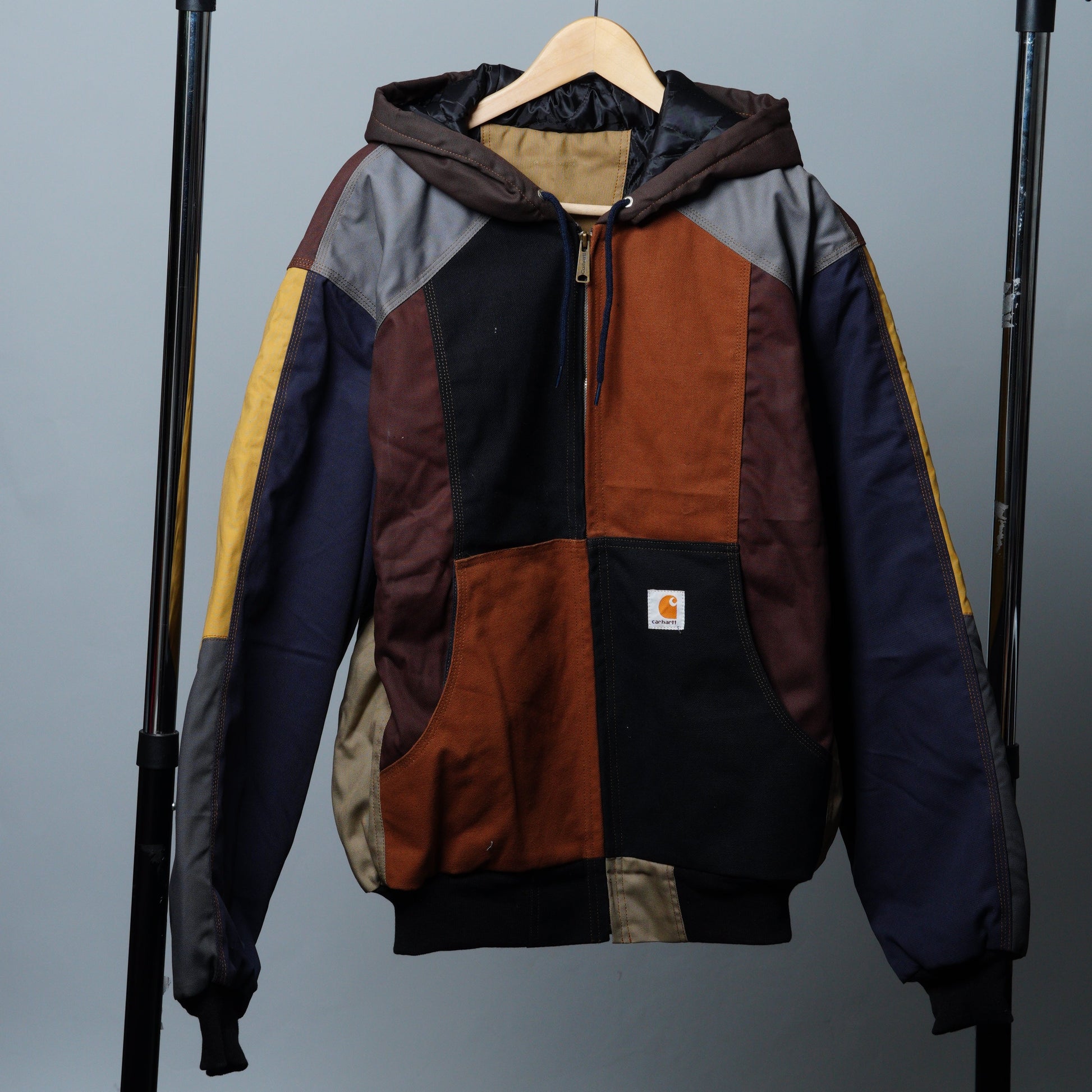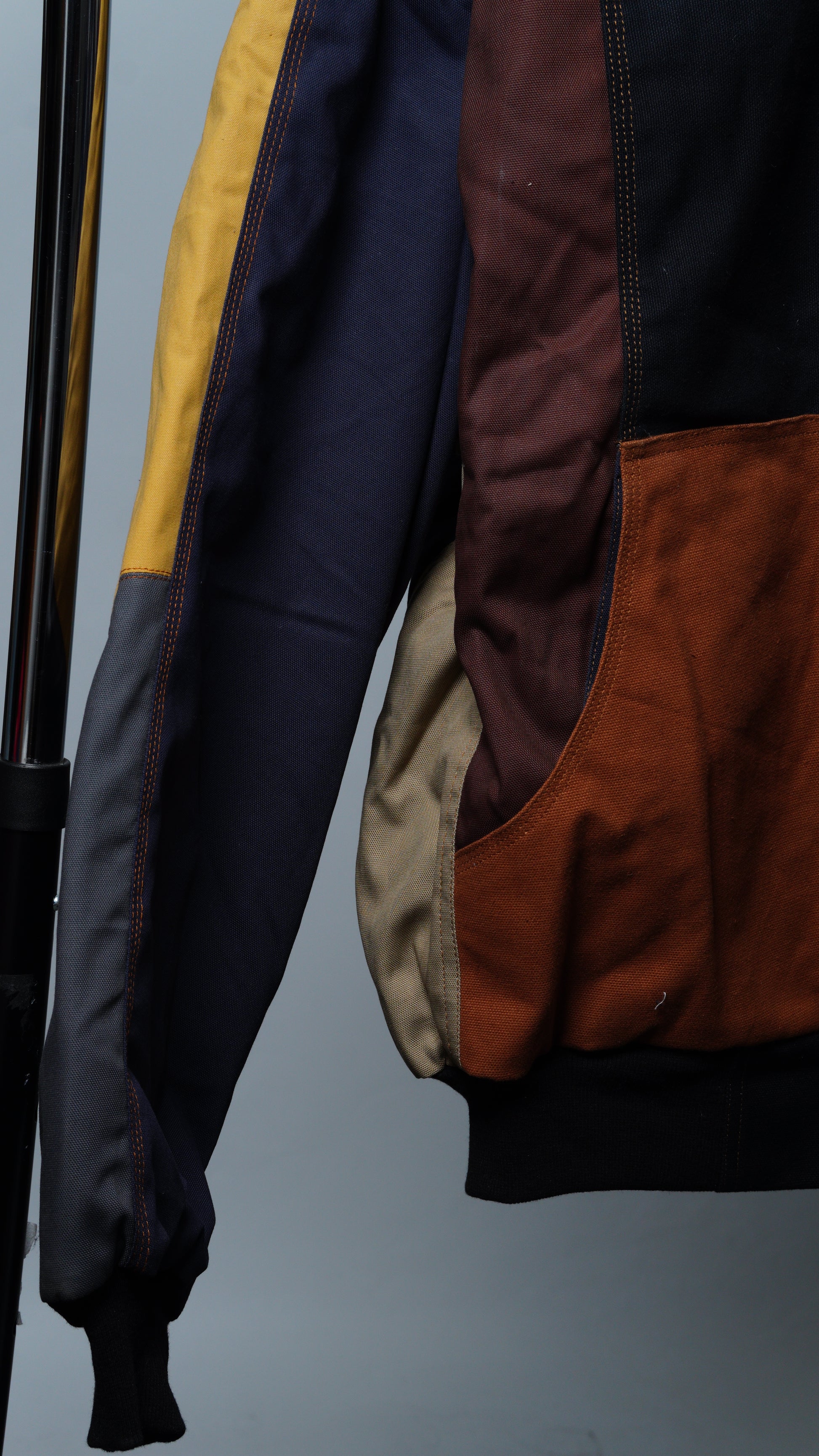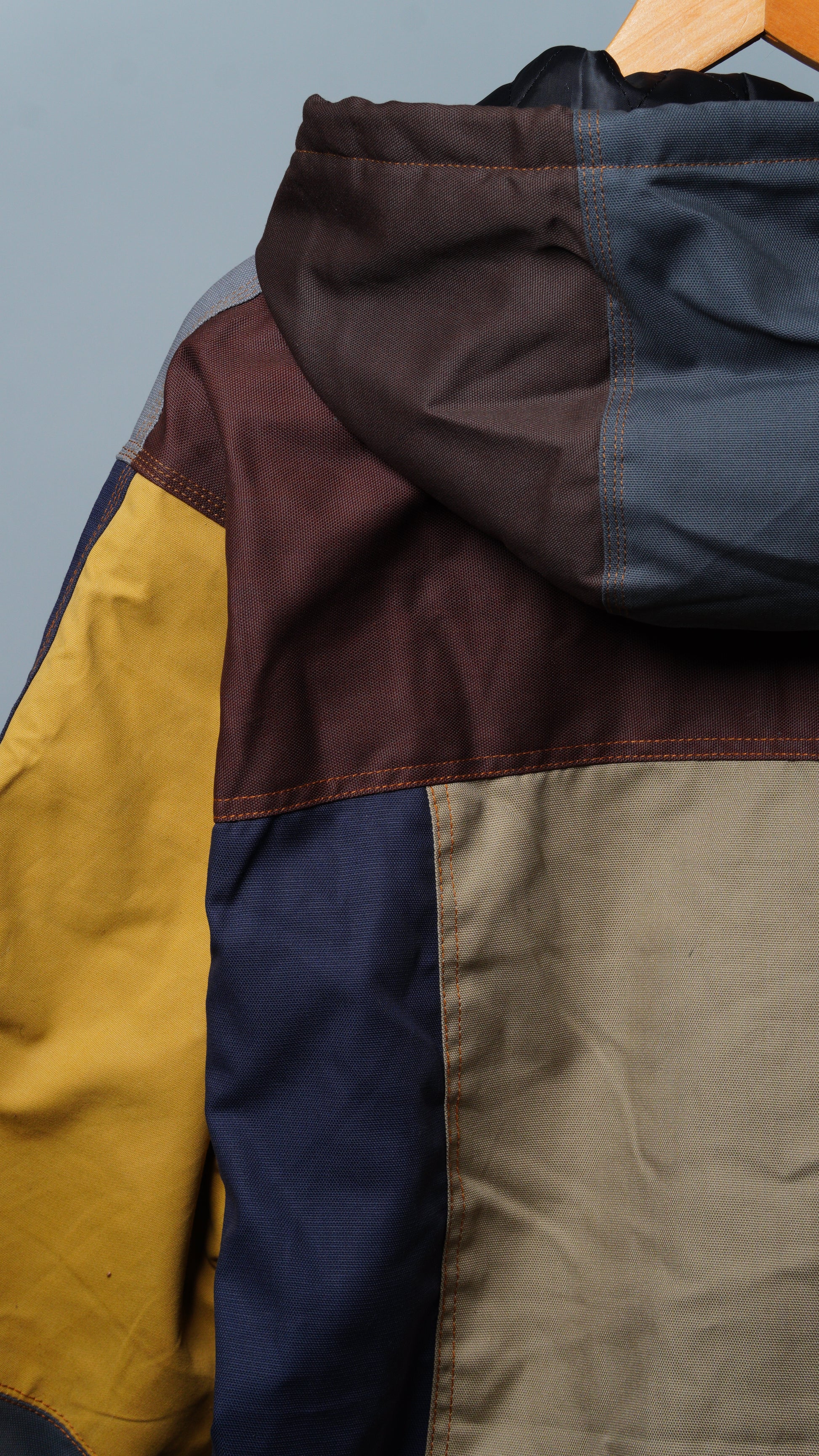 These jackets are made from rag-house-sourced work apparel scraps, built with hardy cotton and a structured fit. Each jacket is unique with various color combinations and cloth linings.