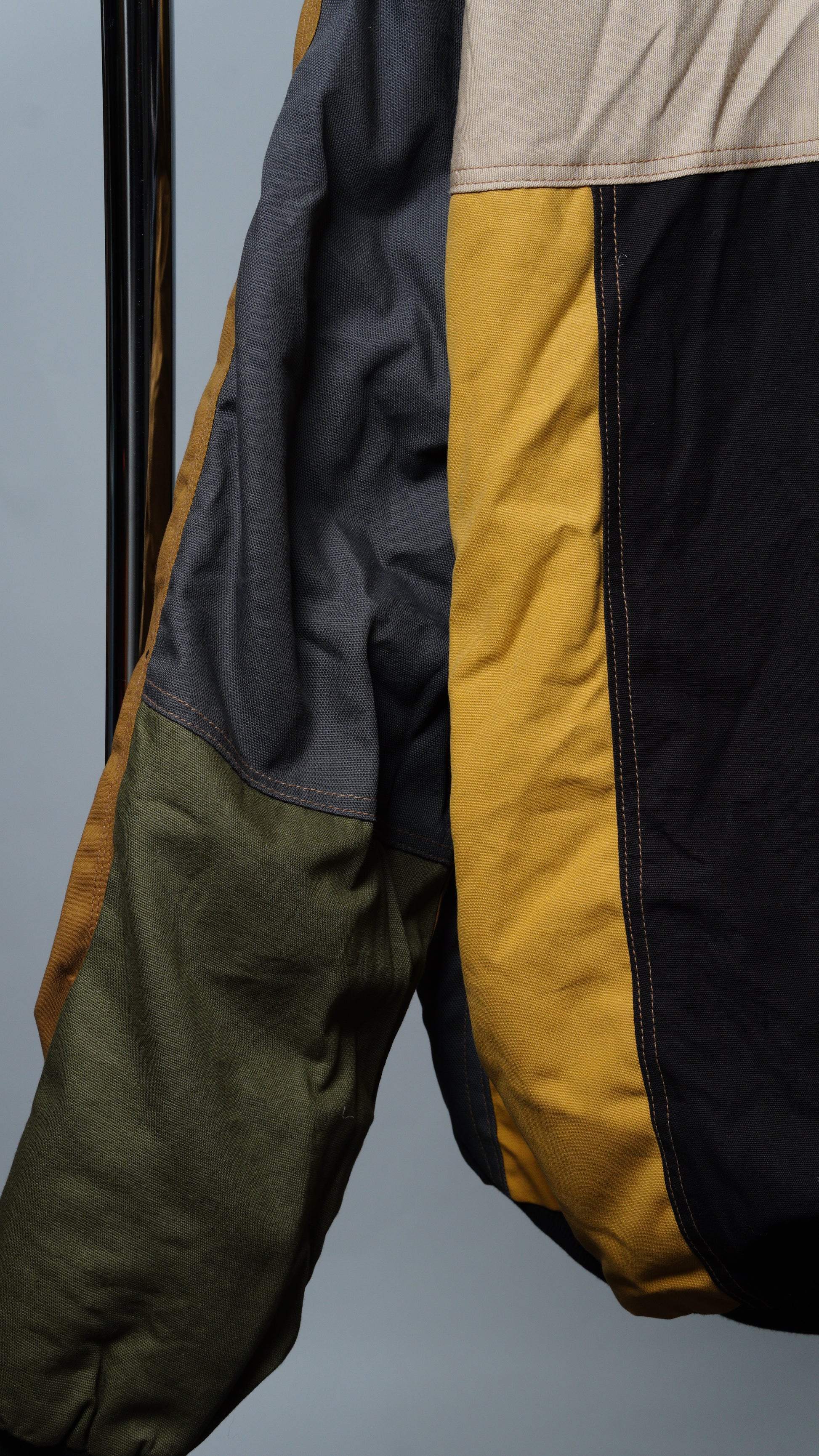 These jackets are made from rag-house-sourced work apparel scraps, built with hardy cotton and a structured fit. Each jacket is unique with various color combinations and cloth linings.